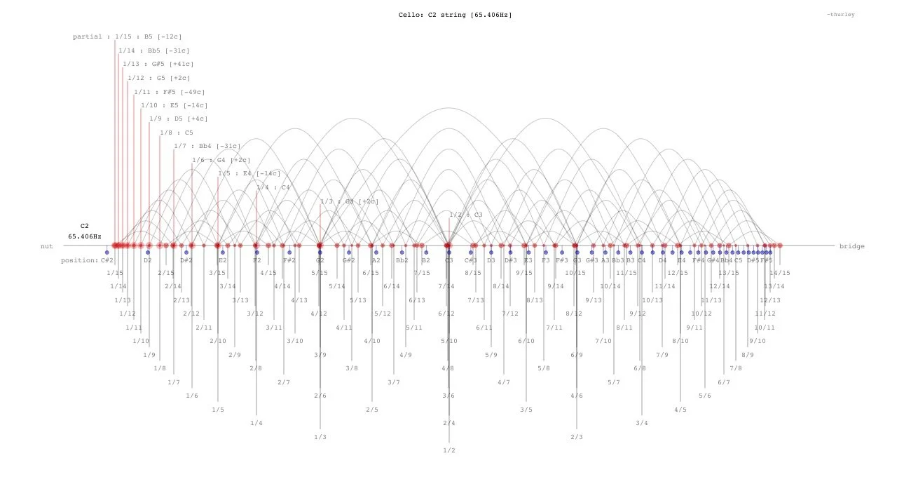 The image below shows you a string from the cello, with a certain number of harmonics mapped on the string. If you aren’t a musician, you won’t understand anything, although you might still appreciate the elegance of the graphics. If you are a musician, you might not understand anything either if you haven’t learned the basics of fundamentals and harmonics. And yet, to make music is to handle fundamentals and harmonics with every sound you make, every piece, every song, every improvisation, every last thing, everything. It’s a mistake for musicians to skip the First Lesson of Harmonics, and to skip the second and the third and the nth time taking the First Lesson of Harmonics.