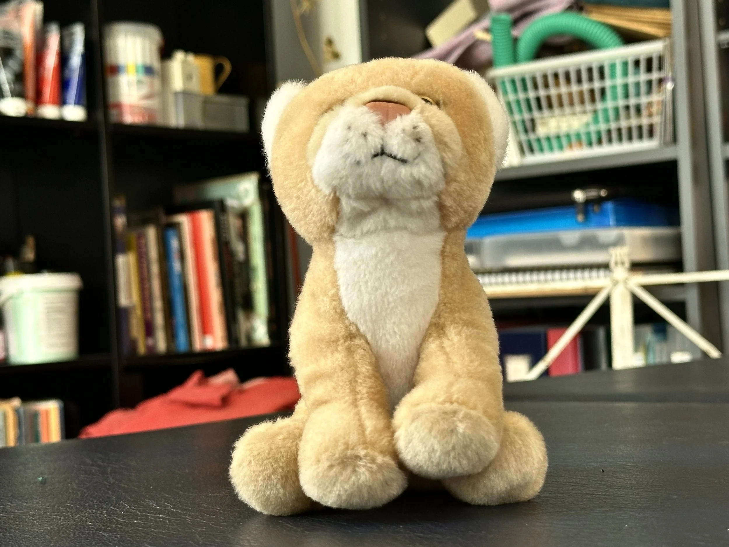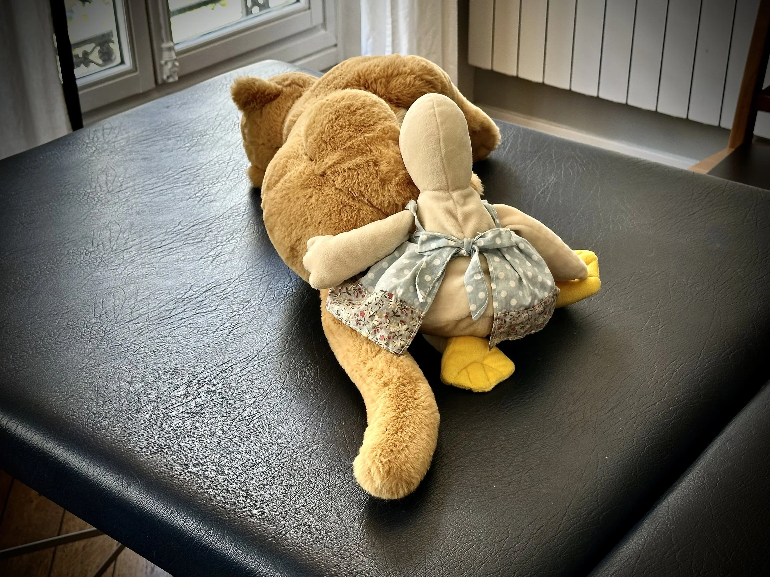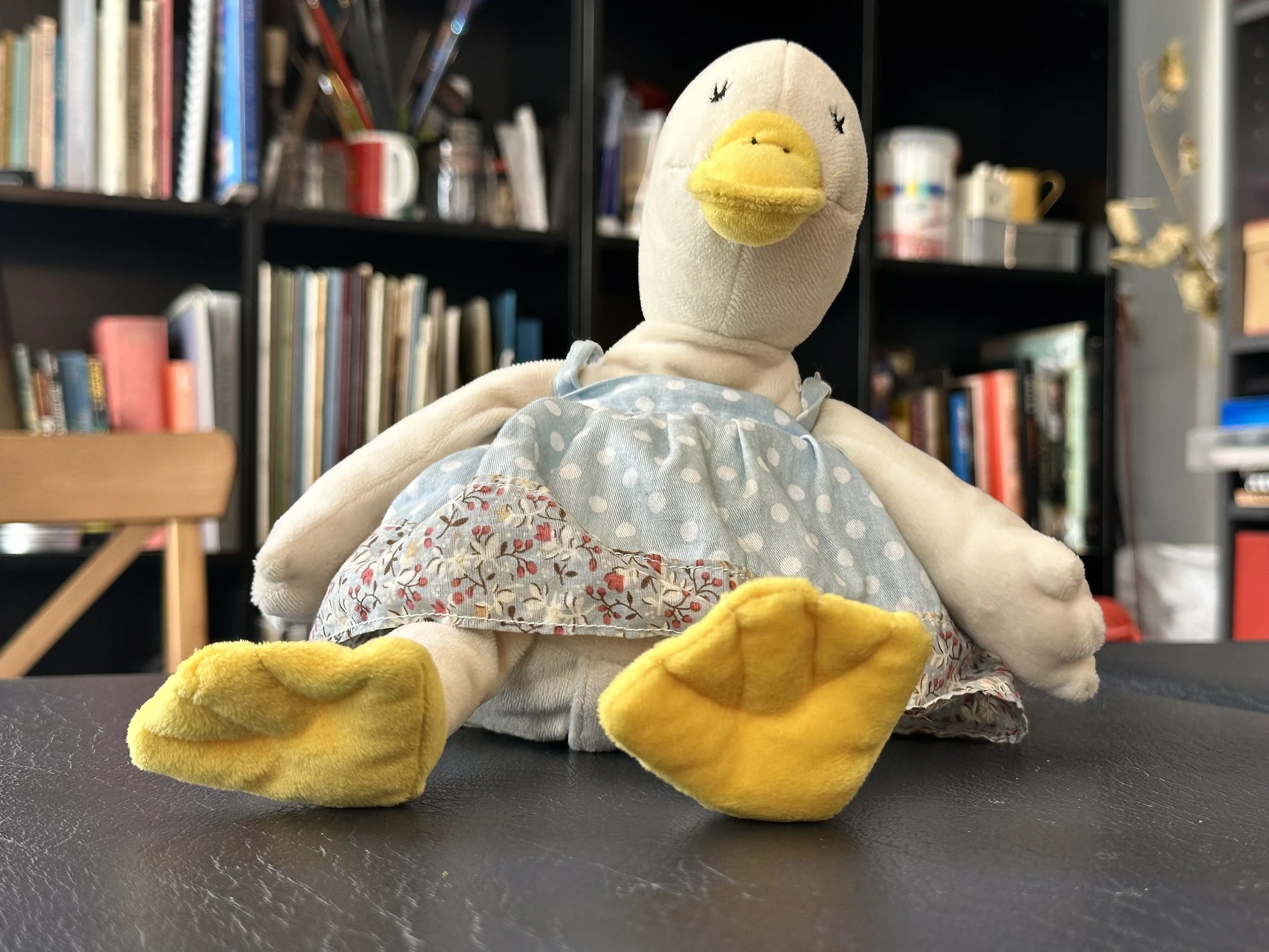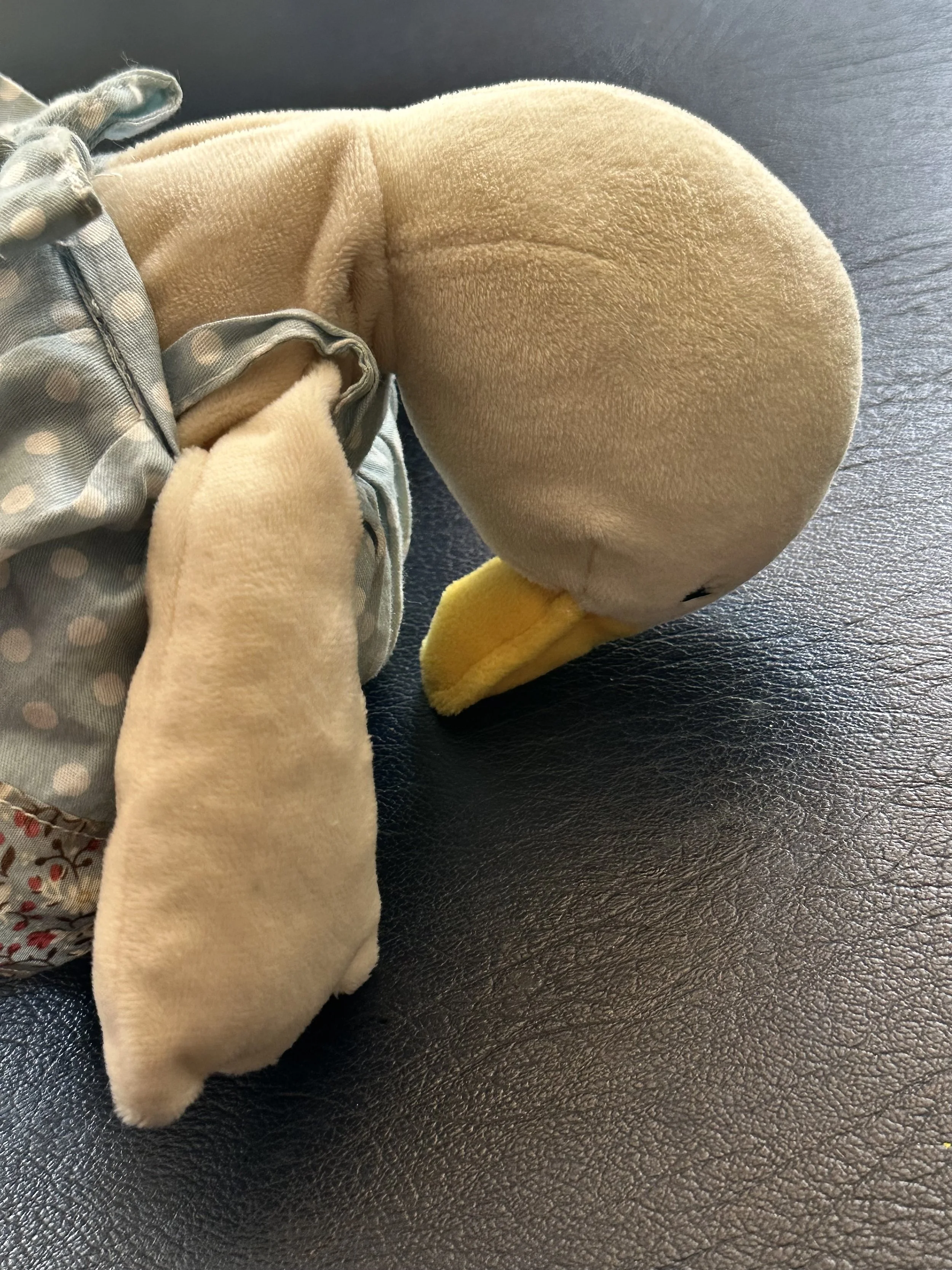 My wife and I don’t have children. We also don’t have a cat or a dog—I mean, a live, flesh-and-blood pet. But we do have stuffed toys; many; a whole menagerie. Lion, tiger, duck, elephant, and assorted ambiguous entities. Some are palm-of-the-hand little, others are big enough to encompass most of your belly and chest when you and the toy are reciprocally recumbent (r&r). The toys have names, personalities, quirks. When we audition new candidates for the menagerie, we test them for squeezeability, cuteness, sad-making eyes, and fluff.